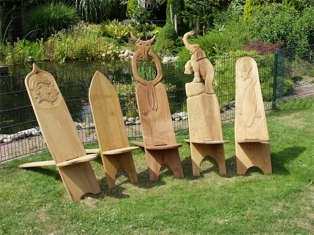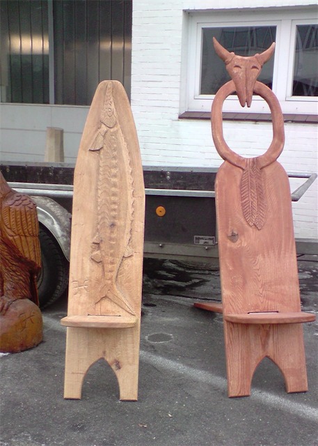 Bänke und Trapperstühle